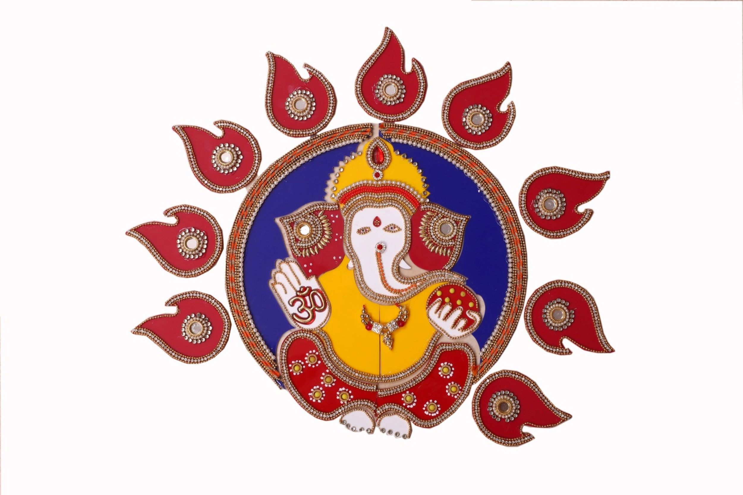 Bring auspiciousness and elegance to your celebrations with this Acrylic Rangoli featuring Lord Ganesha design. Beautifully adorned with vibrant colors, sparkling stones, and embellishments, this rangoli adds a divine and welcoming charm to your home. Perfect for Diwali, Ganesh Chaturthi, weddings, housewarmings, poojas, and special occasions, this rangoli is a symbol of prosperity and good fortune.