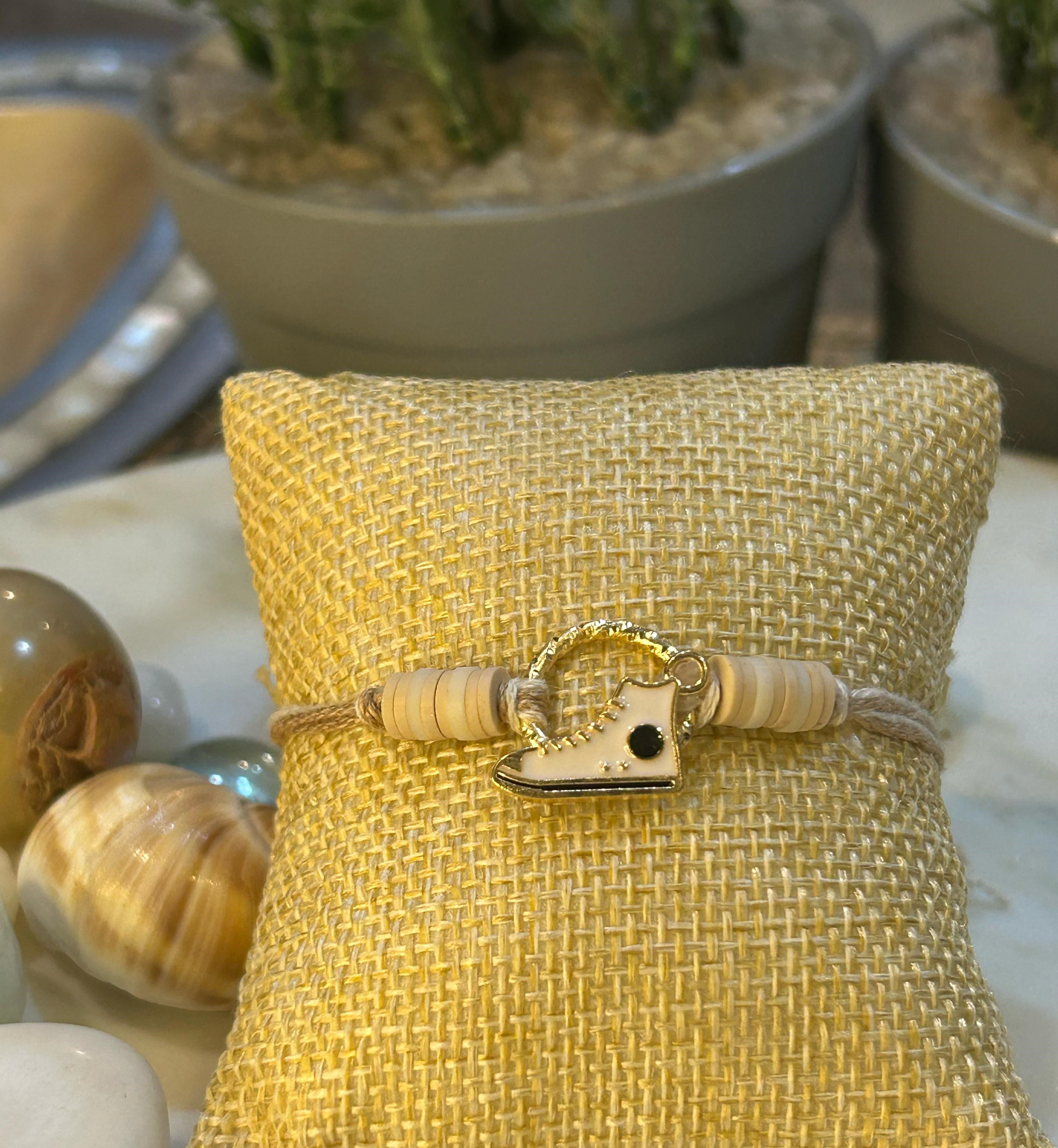 Celebrate love for sneakers with this Sneaker Charm Rakhi that comes with a metal sheet embellishment in the shape of a sneaker with blue beads