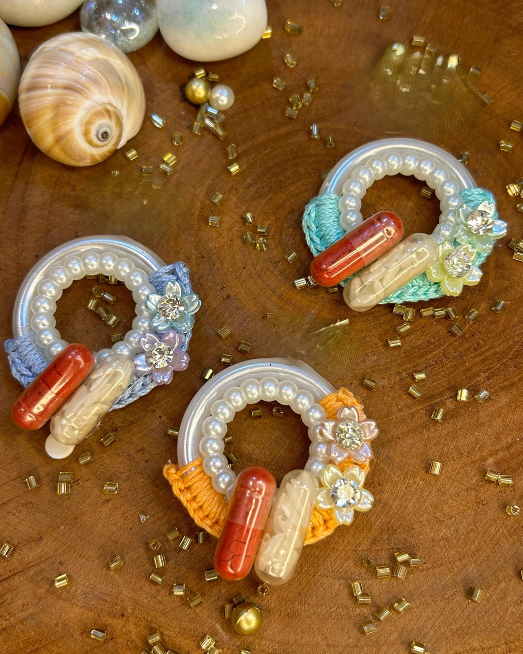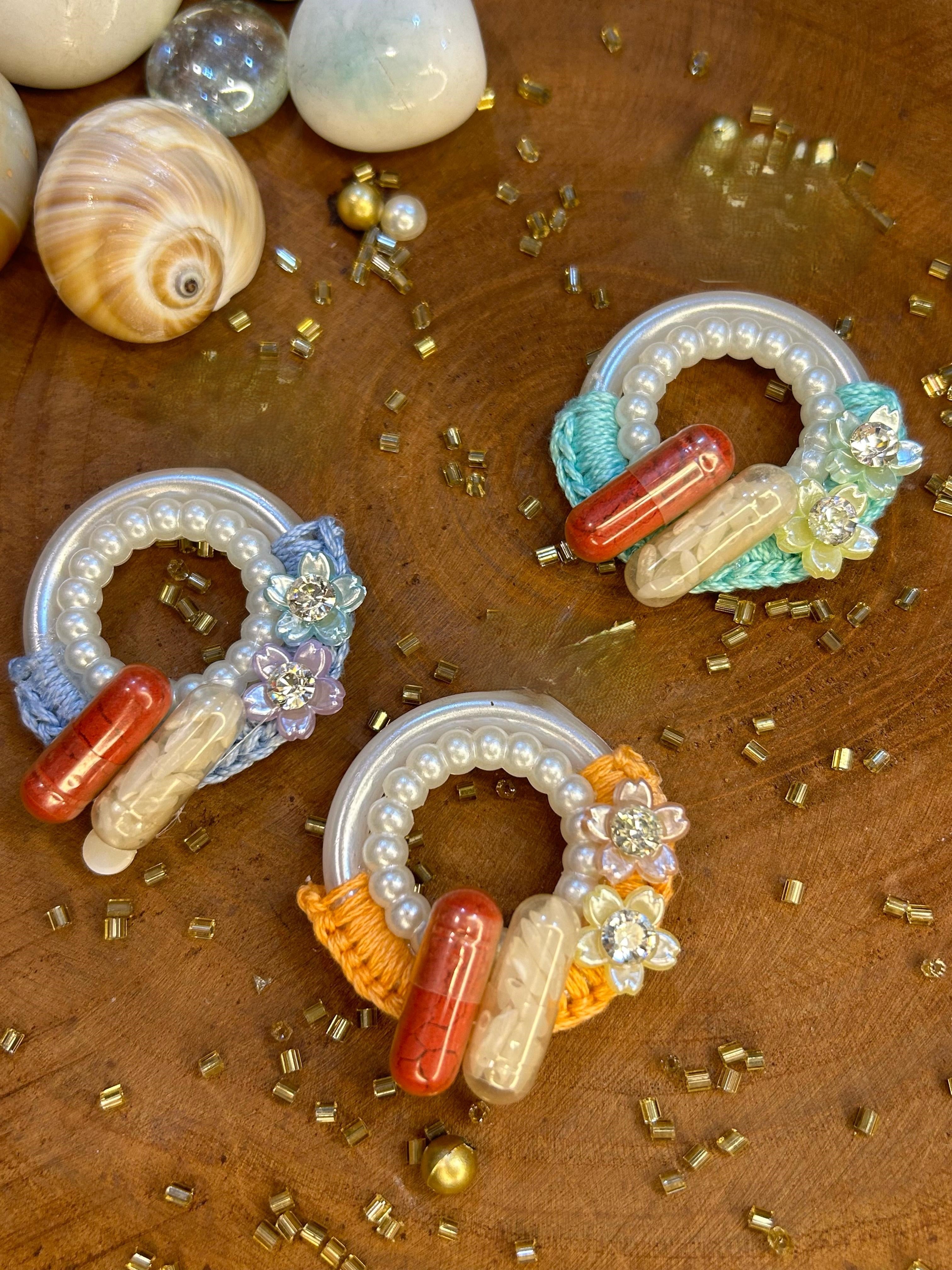 Decorative rings featured white pearls, colourful accents and capsule-shaped beads, perfect for a traditional festivities or gifting