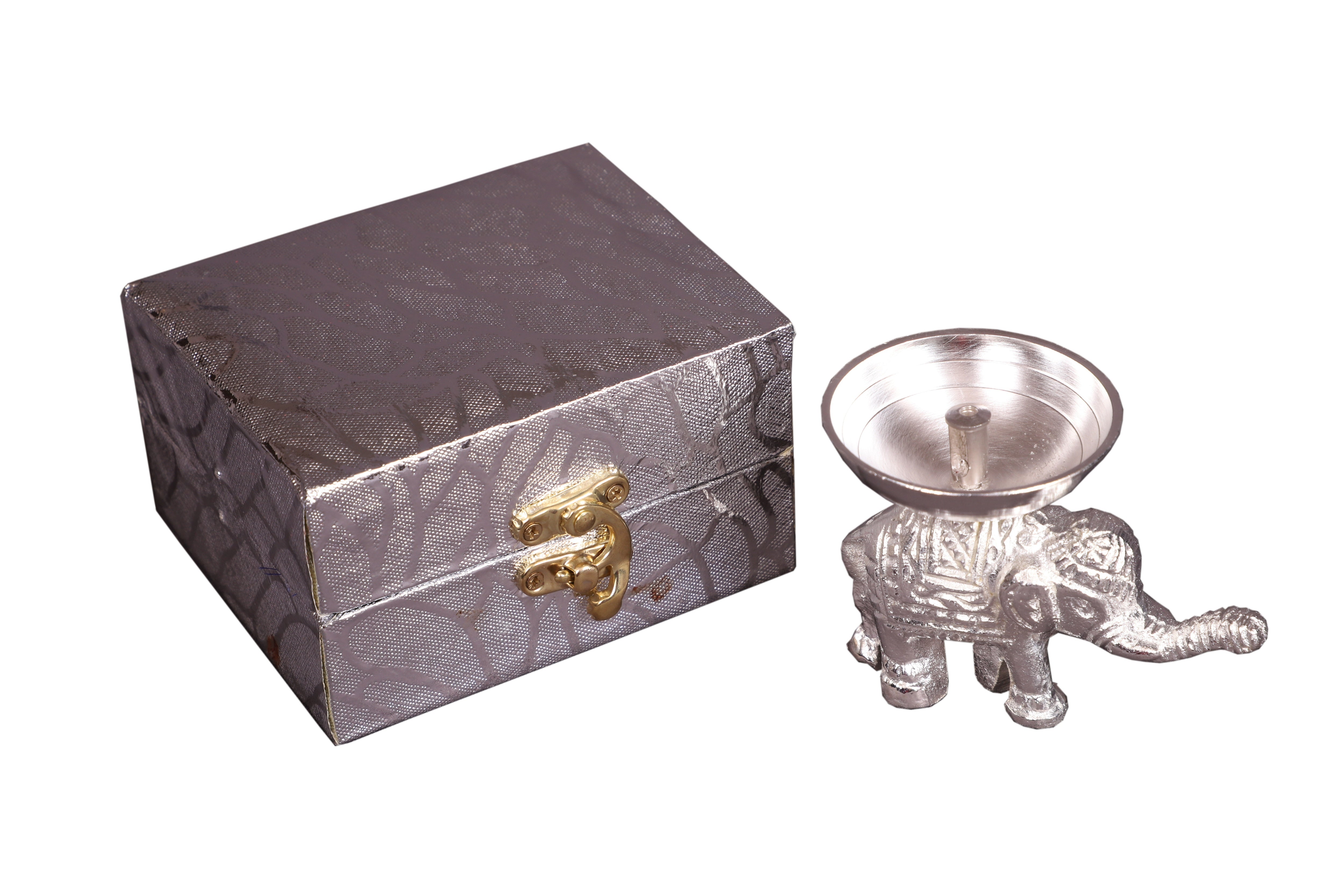 A charming, silver toned elephant figurine designed to hold a tealight candle adding a touch of exotic elegance.