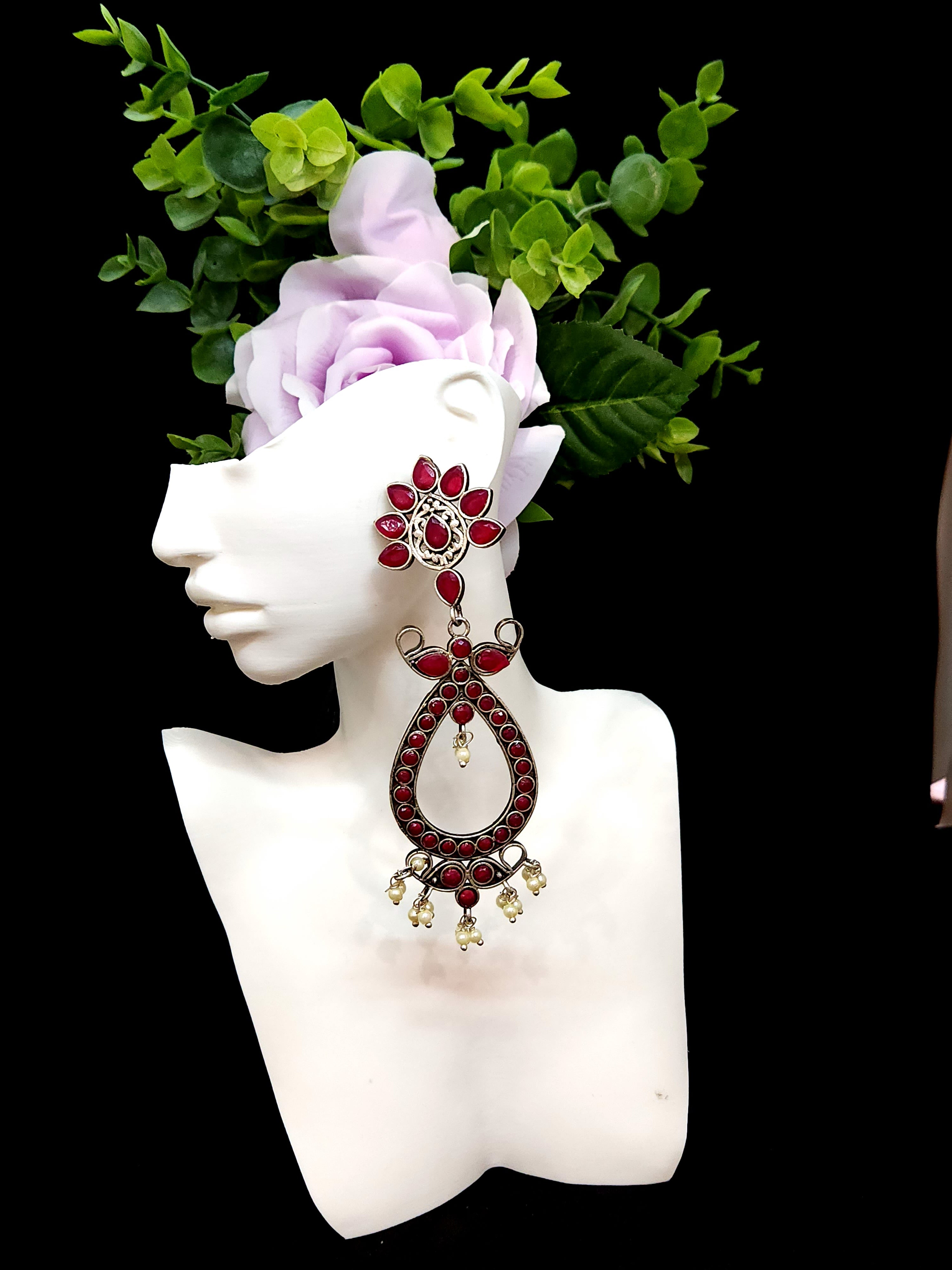 Ethnics Oxidised Red Stone Jhumkas for festive wear