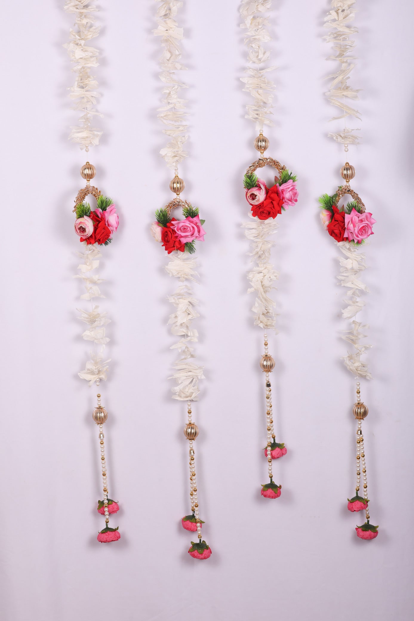Festive Wall Hanging with pink and red roses. Perfect for hanging on the front door to liven up the entrance to your home .