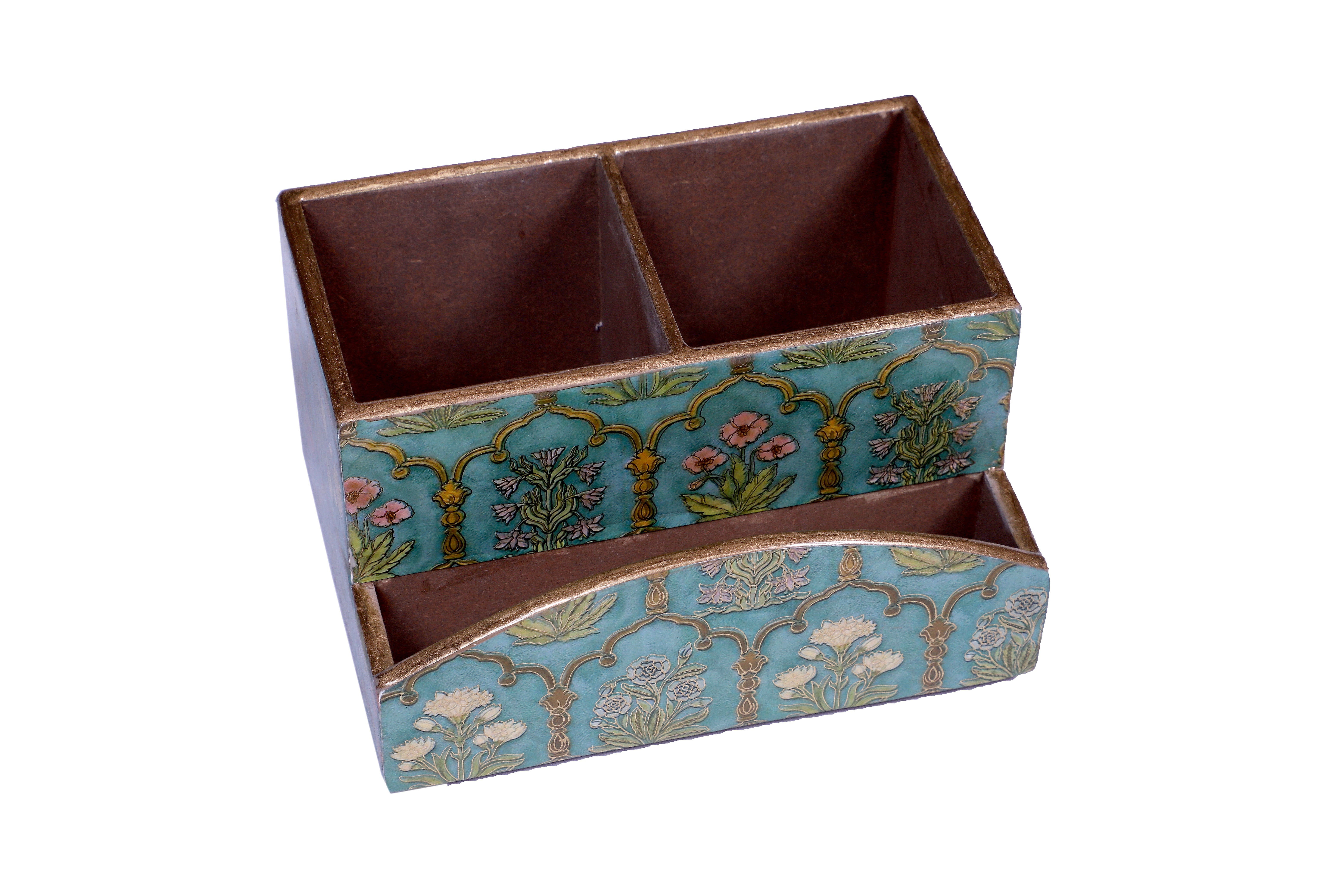 Bring charm and character to your table with this Wooden Cutlery Caddy in vintage turquoise blue, finished with a delicate floral design. It offers ample compartments to neatly organize cutlery, napkins, or dining essentials. The blend of rustic turquoise tones and elegant floral accents makes it a perfect choice for both everyday use and special occasions. Stylish, practical, and timeless, this caddy is a beautiful addition to any dining space.